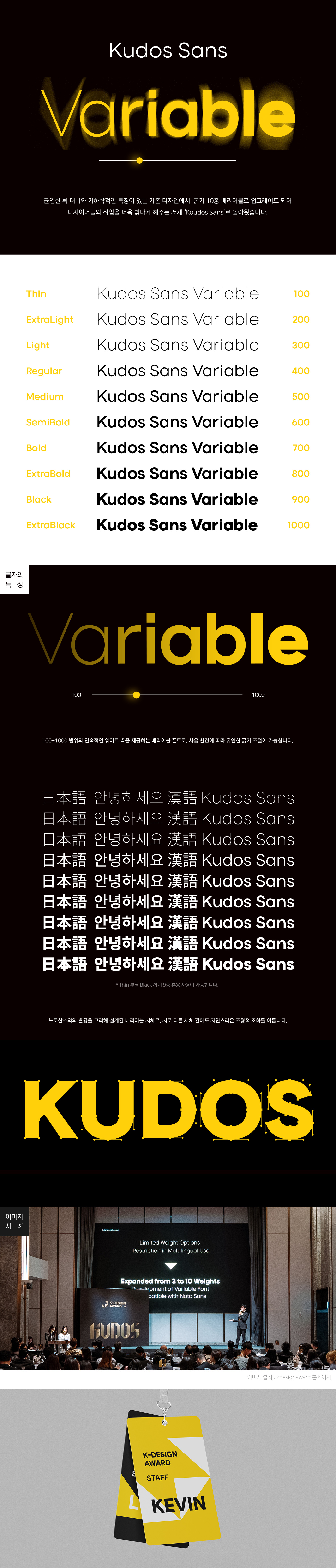 지오메트릭 기반의 고딕 영문 서체로, 균일한 획 대비로 안정감을 주며 정원에 가까운 원형과 기하학적 형태를 가지고 있습니다. 배리어블 폰트를 지원하며 노토산스와 자연스럽게 혼용해 사용할 수 있도록 제작된 서체입니다.